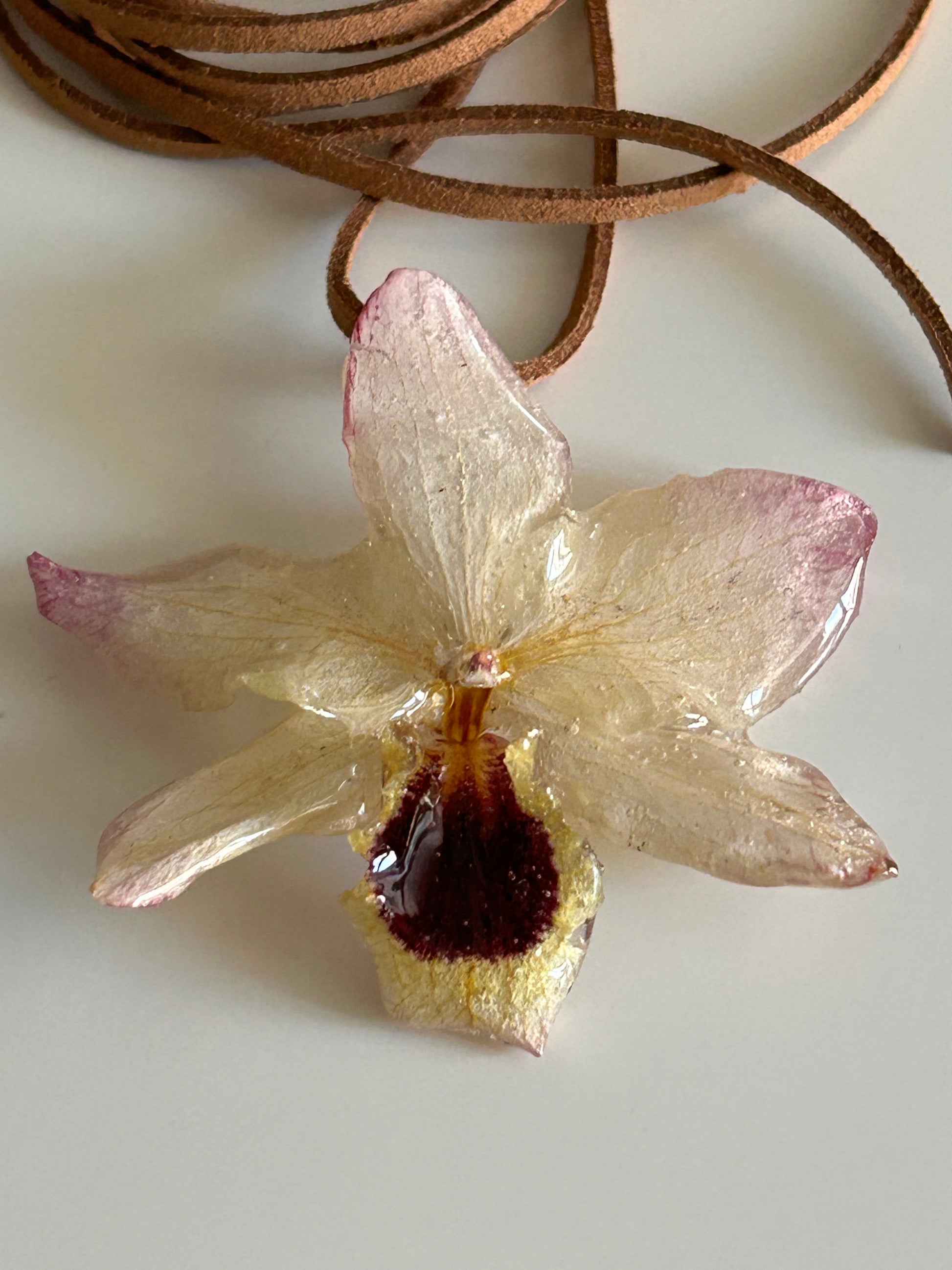 this is a REAL dendrobium orchid carefully dried and then preserved in resin
