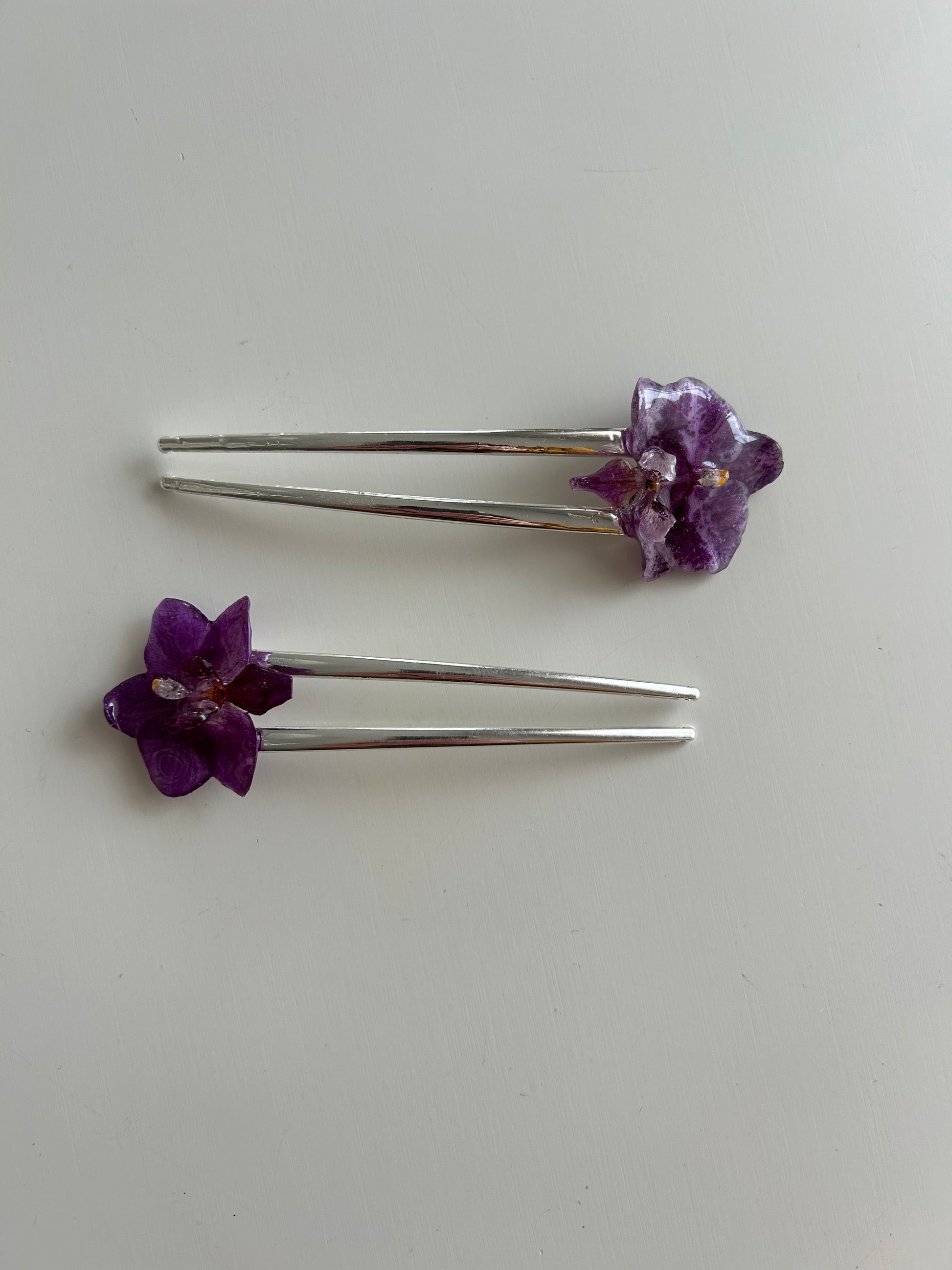 this is a REAL orchid carefully dried and then preserved in resin on a silver french pin